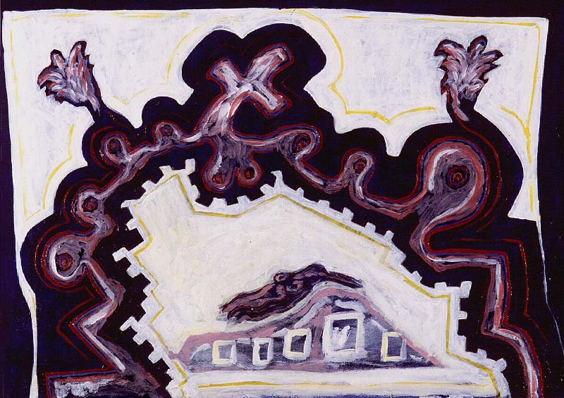 Fotograf: Eget foto Værk titel: Dette er ikke en portugisisk kirke Værk type: Maleri Materiale: Acryl på lærred Størrelse: 43x60 cm Færdiggjort: 1993 Øvrigt: Fra dialogserien med Poul Pedersen, Paris
