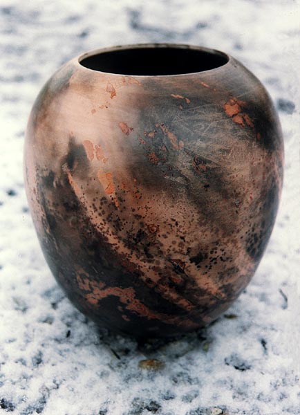 Fotograf: Eget foto Værk titel: Efterår Værk type: Keramik Materiale: Savsmuldsbrændt keramik Størrelse: 25 x 20 cm Færdiggjort: 1997
