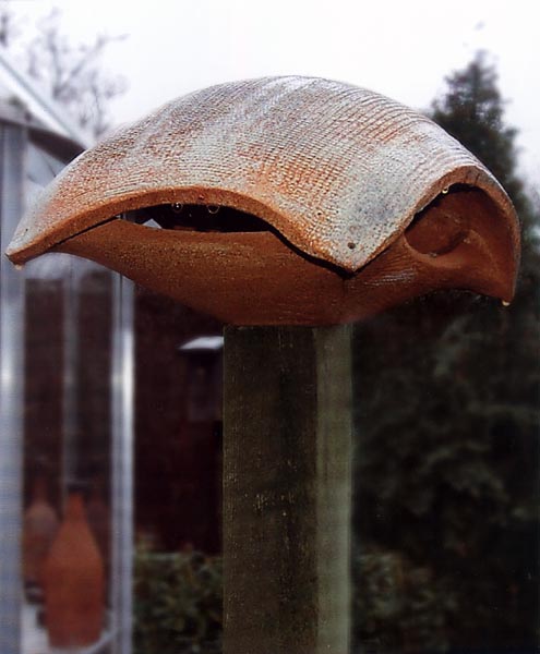 Fotograf: Eget foto Værk titel: Fuglefoder-dome Værk type: Skulptur Materiale: Stentøj Størrelse: 26x37x25 cm. Færdiggjort: 1999