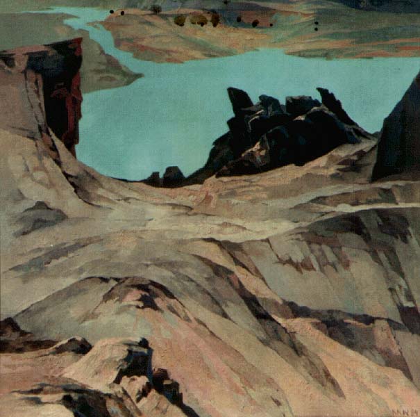 Fotograf: Svend Engelstoft Værk titel: Højdeforskelle, Johunheimen Værk type: Maleri Materiale: Putrido på lærred Størrelse: 110x110 cm. Færdiggjort: 1984