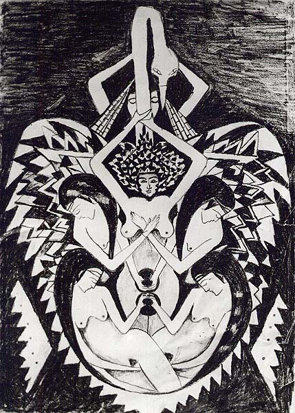 Fotograf: Eget foto Værk titel: Leder i sin erotiske svane Værk type: Maleri Størrelse: 110 x 120 cm Øvrigt: Findes også som grafik