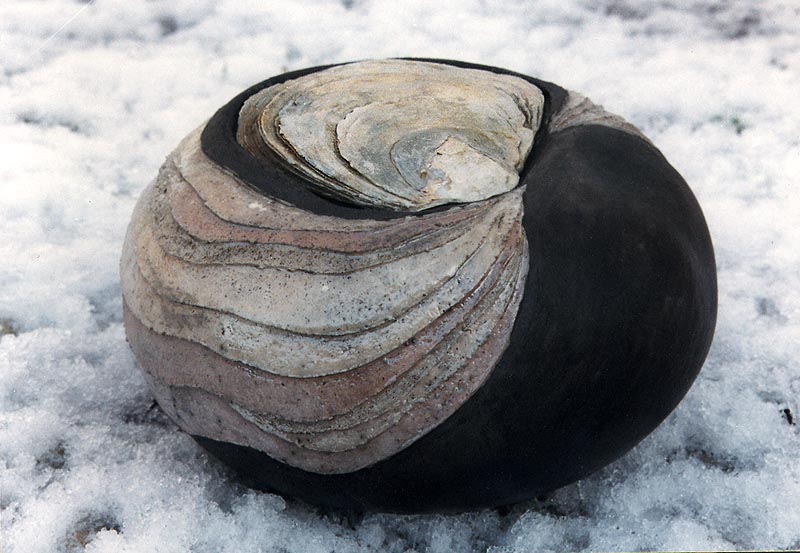 Fotograf: Eget foto Værk titel: Østerslågkrukke Værk type: Keramik Materiale: Rakubrændt keramik Størrelse: 10 x 15 cm Færdiggjort: 1997