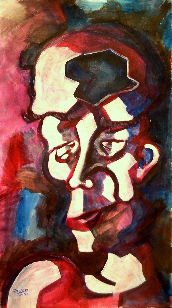 Værk titel: Psychopath Værk type: maleri Materiale: akryl på træplade Størrelse: 78 x 43 cm Færdiggjort: 2011 Kategorier: figur & form, fantasy, ekspressionisme, modernistisk, surrealistisk Farver: rød, brun, blå, hvid, lysrød Pris: 7200 kr.