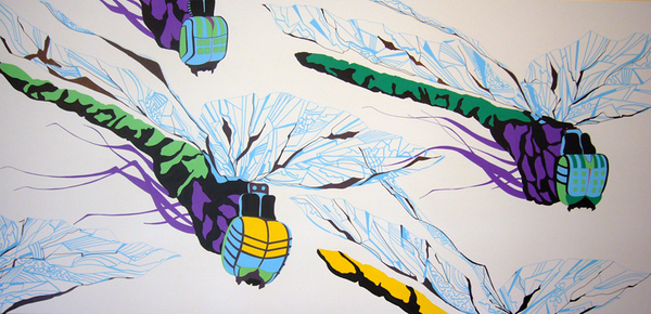 Akryl og tusch på lærred