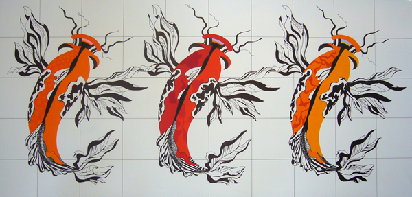 Akryl og tusch på lærred